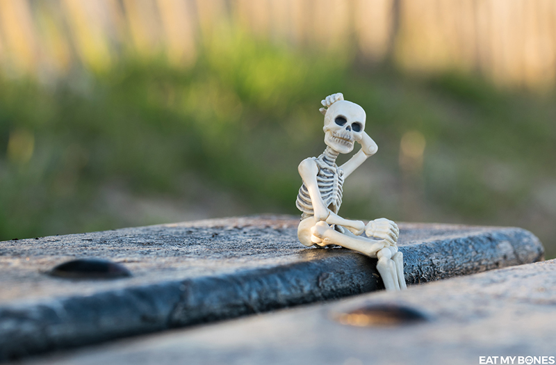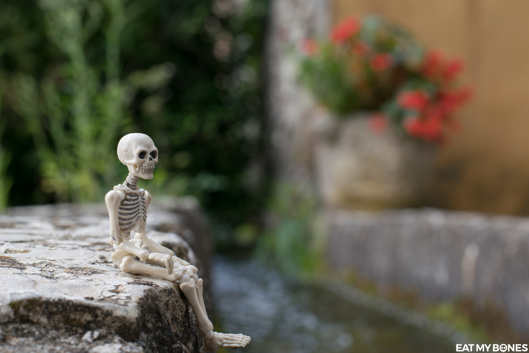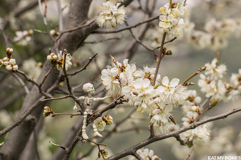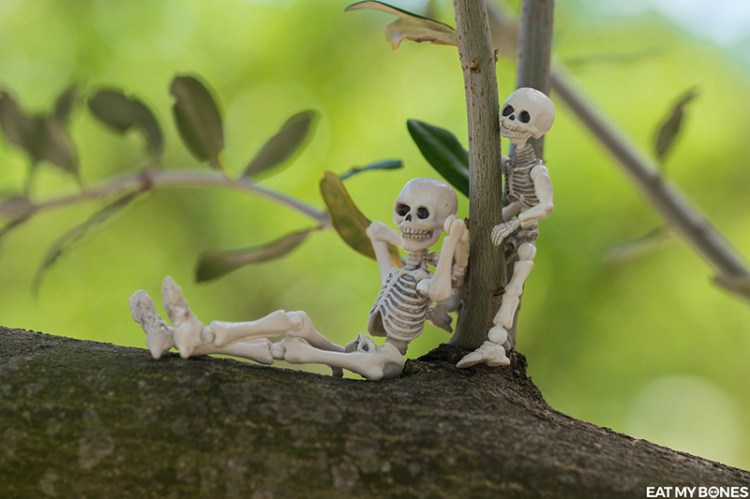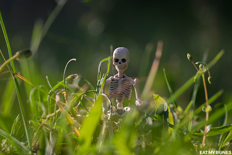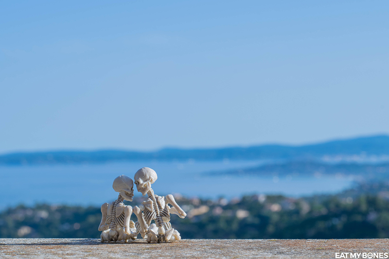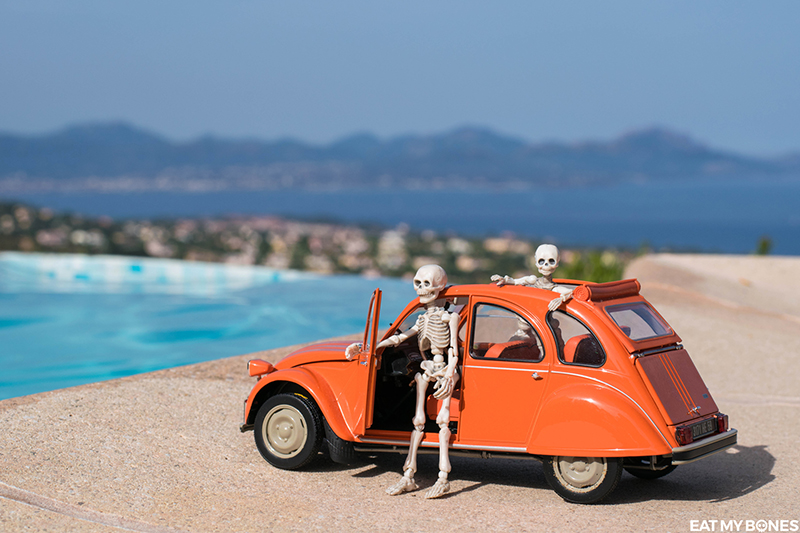 Que ce soit dans le jardin, en France ou à l’étranger, les squelettes embarquent toujours avec moi pour explorer le vaste monde.