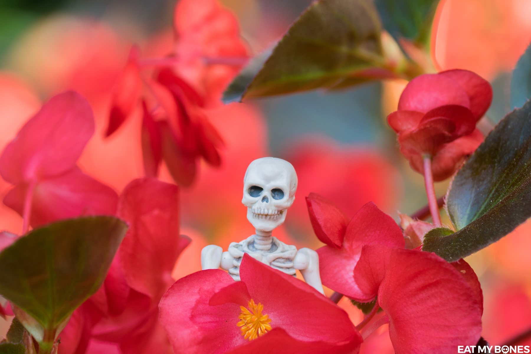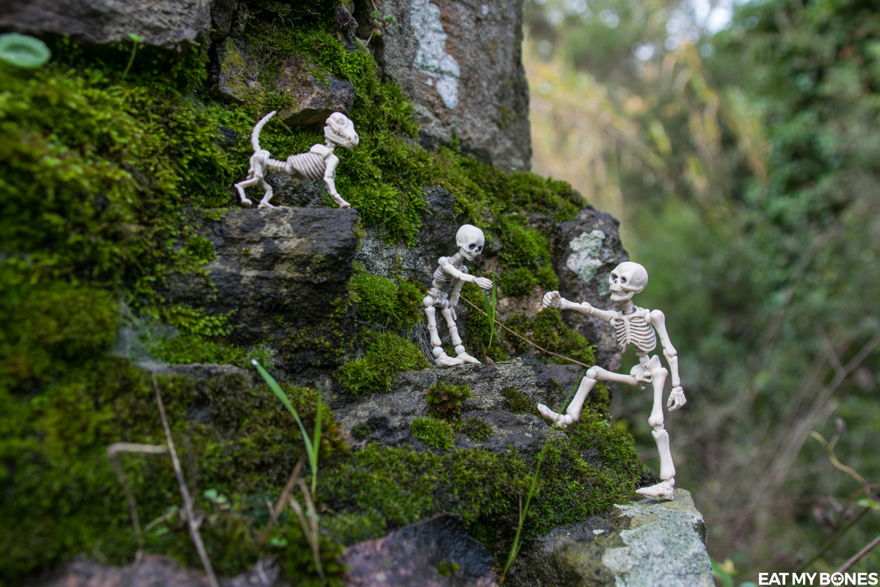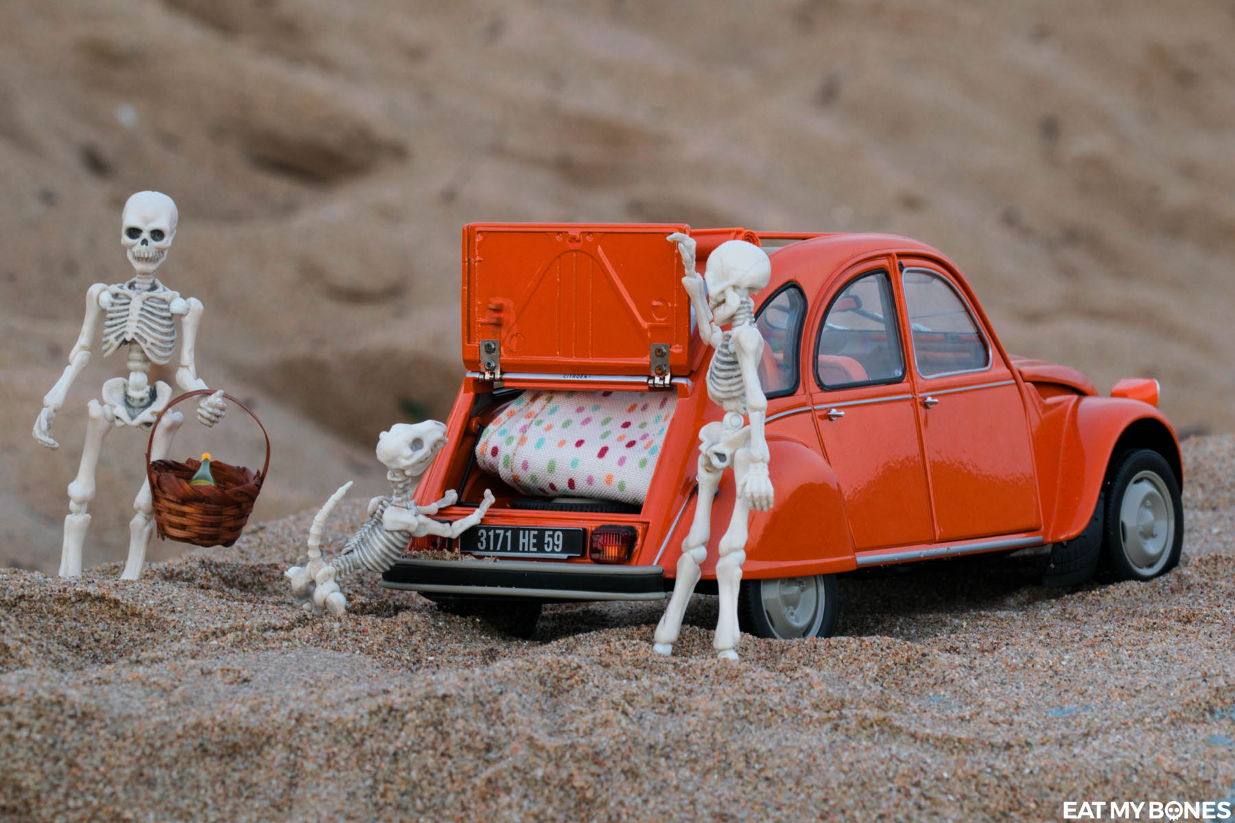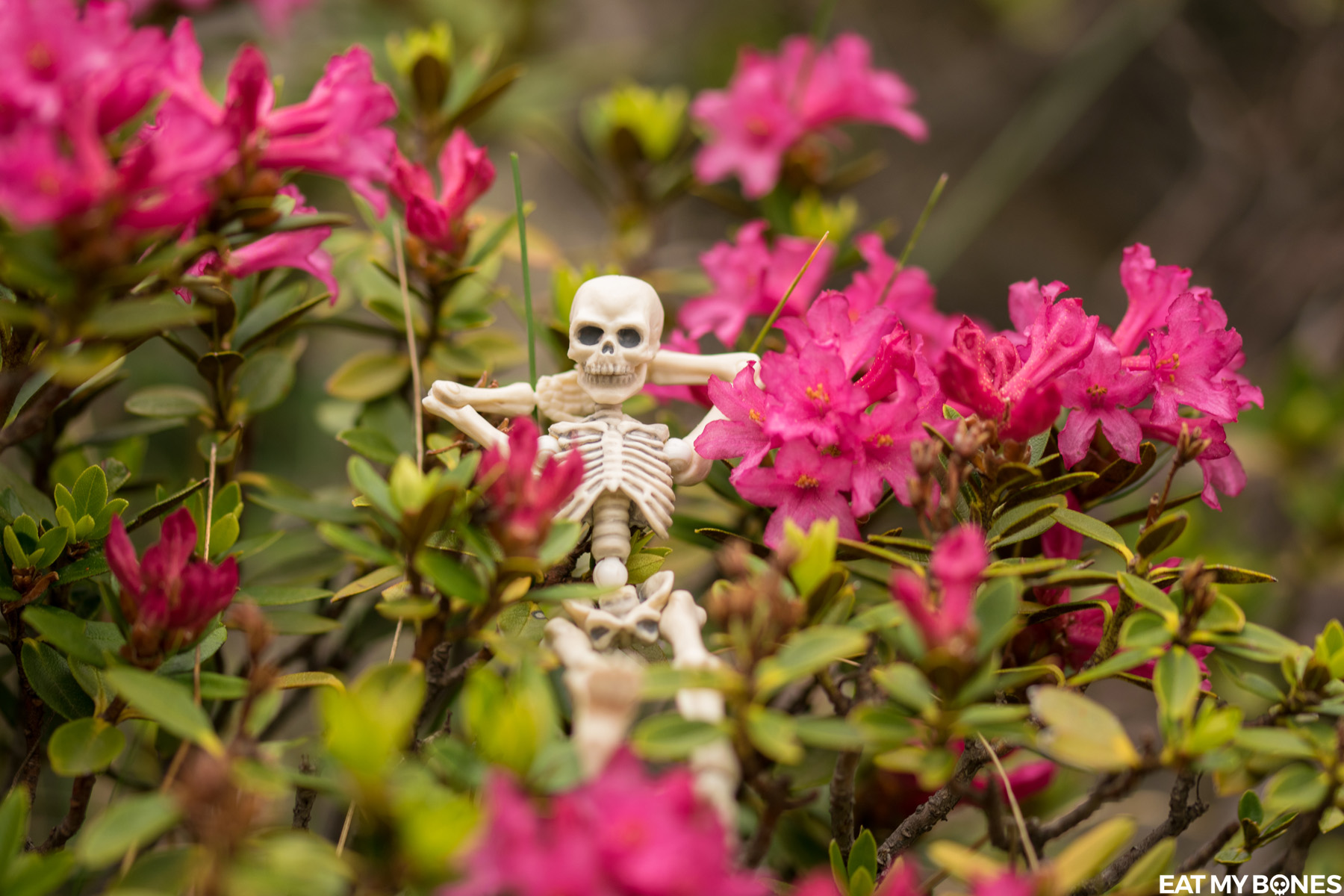 Que ce soit dans le jardin, en France ou à l’étranger, les squelettes embarquent toujours avec moi pour explorer le vaste monde.